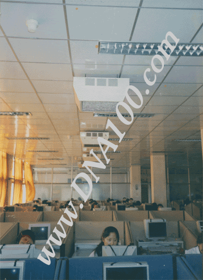 项目:机房空气净化。114机房有话务人员400人,并且不停地在工作,进行语音服务;机房有电脑400台,显示器为CRT显示器,设备密集,一周七天,24小时在运转。晚上值班人员相对较少,白天人员和设备非常密集。